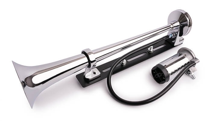 A COMPLETE KIT - OUR 2.0 KIT INCLUDES EVERYTHING YOU NEED FOR THE INSTALLATIONMetal Trumpet, Metal Mounting Plate*, Metal O-Ring Mount*, 12V Compressor, Complete Wiring Kit*, Air Line, Bolts & Fixings, and a User Manual. *New in 2.0.